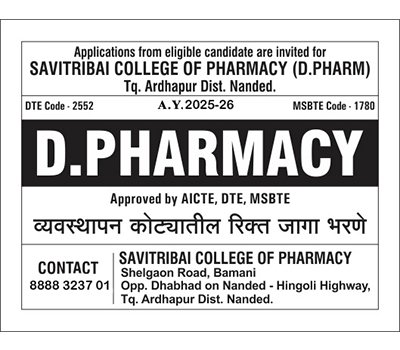 What makes Jagadguru Savitribai college of pharmacy an ideal learning destination.There are a host of factors that give SCOP an edge in the teaching and advancement of the medical sciences. To begin with, the SCOP has created a vigorous and intellectually stimulating ambiance conducive to learning and reflection. Students will find campus life to be vibrant and challenging.